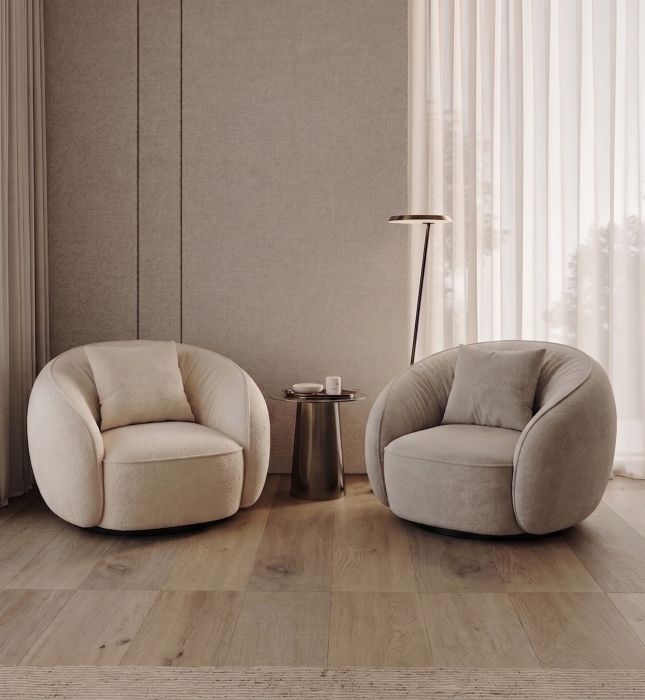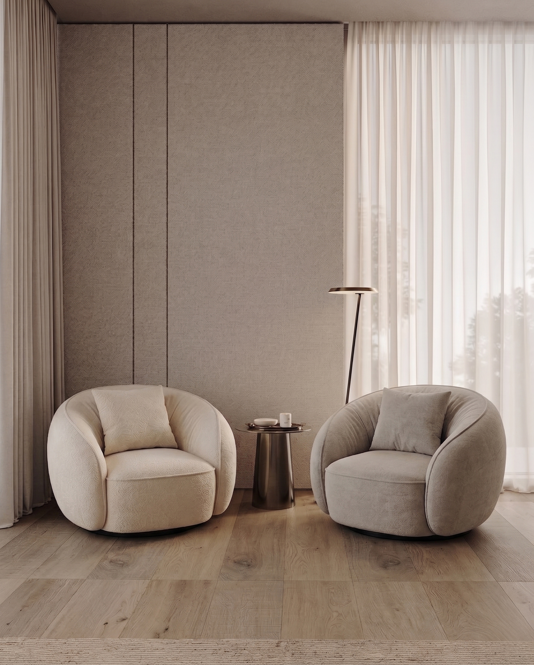 כורסא מסתובבת דגם קלאב, עשויה מבד בשני גוונים: אפור בהיר (04) ובז (03).