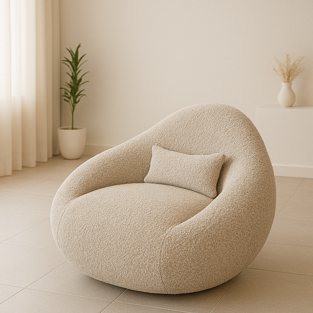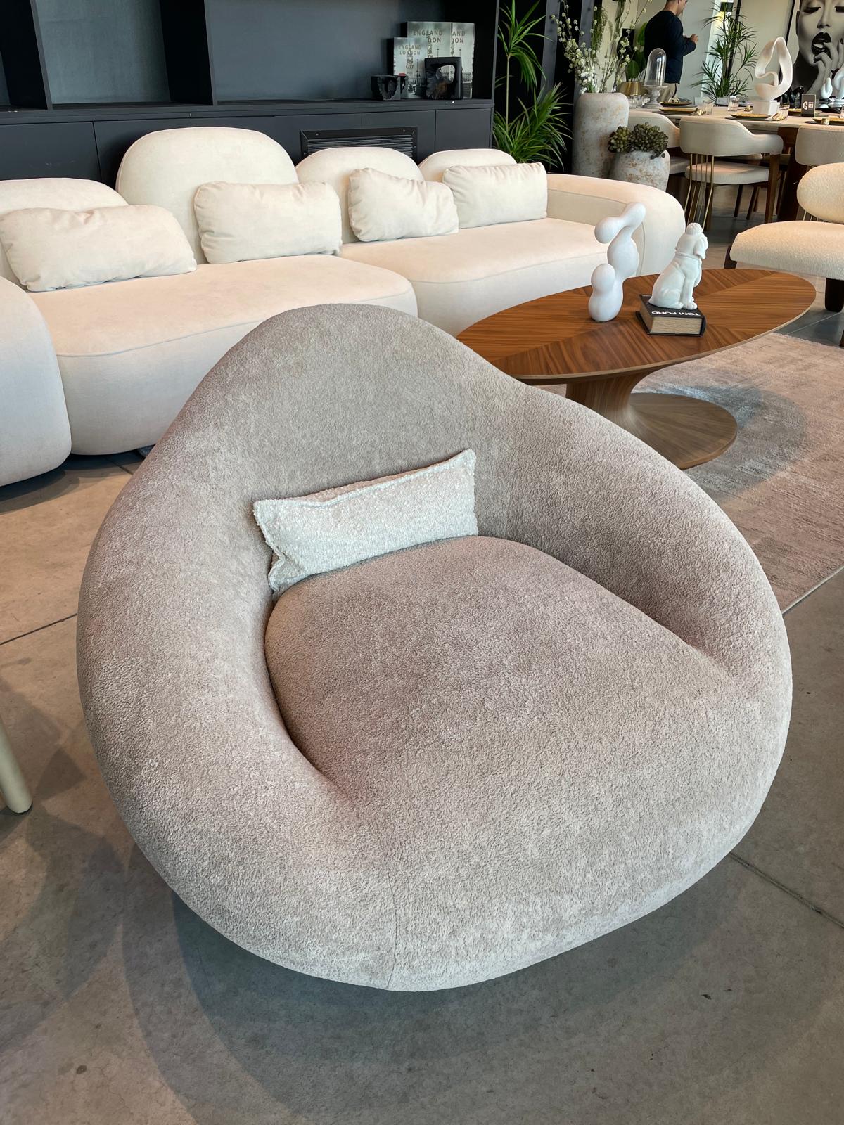 כורסה מעוצבת דגם מוליבו (Molivo) זמינה ב2 גוונים, בז' או אפור אבן. מסתובבת 360° ונתמכת ברגלי מתכת.