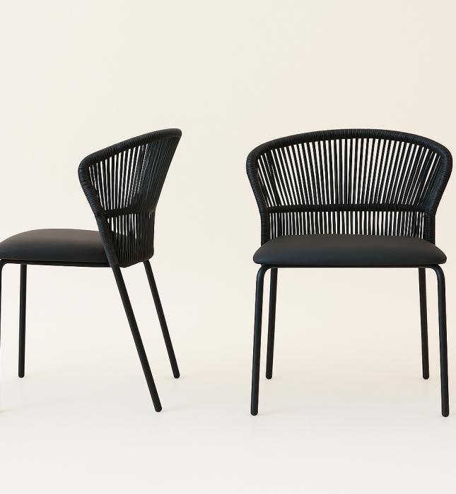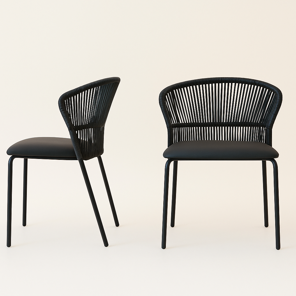 כיסא אוכל דגם רשת (UDC23004) עשוי מושב דמוי עור גוון שחור בשילוב חוטים במשענת גב.