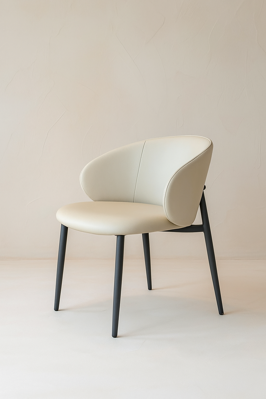 כיסא אוכל דגם דון (A-8436B) עשוי דמוי עור, מושב בגוון בז' ורגלי מתכת גוון שחור.
