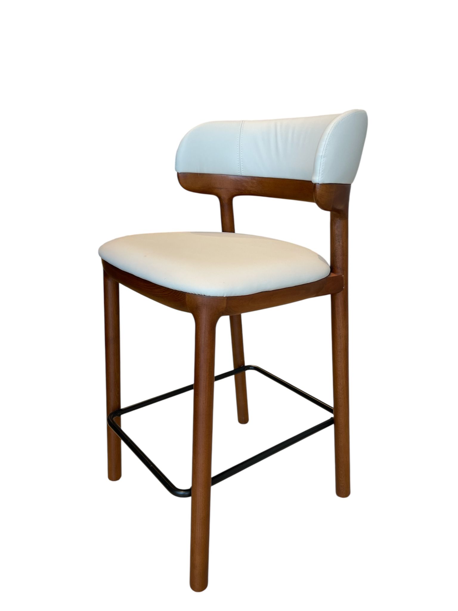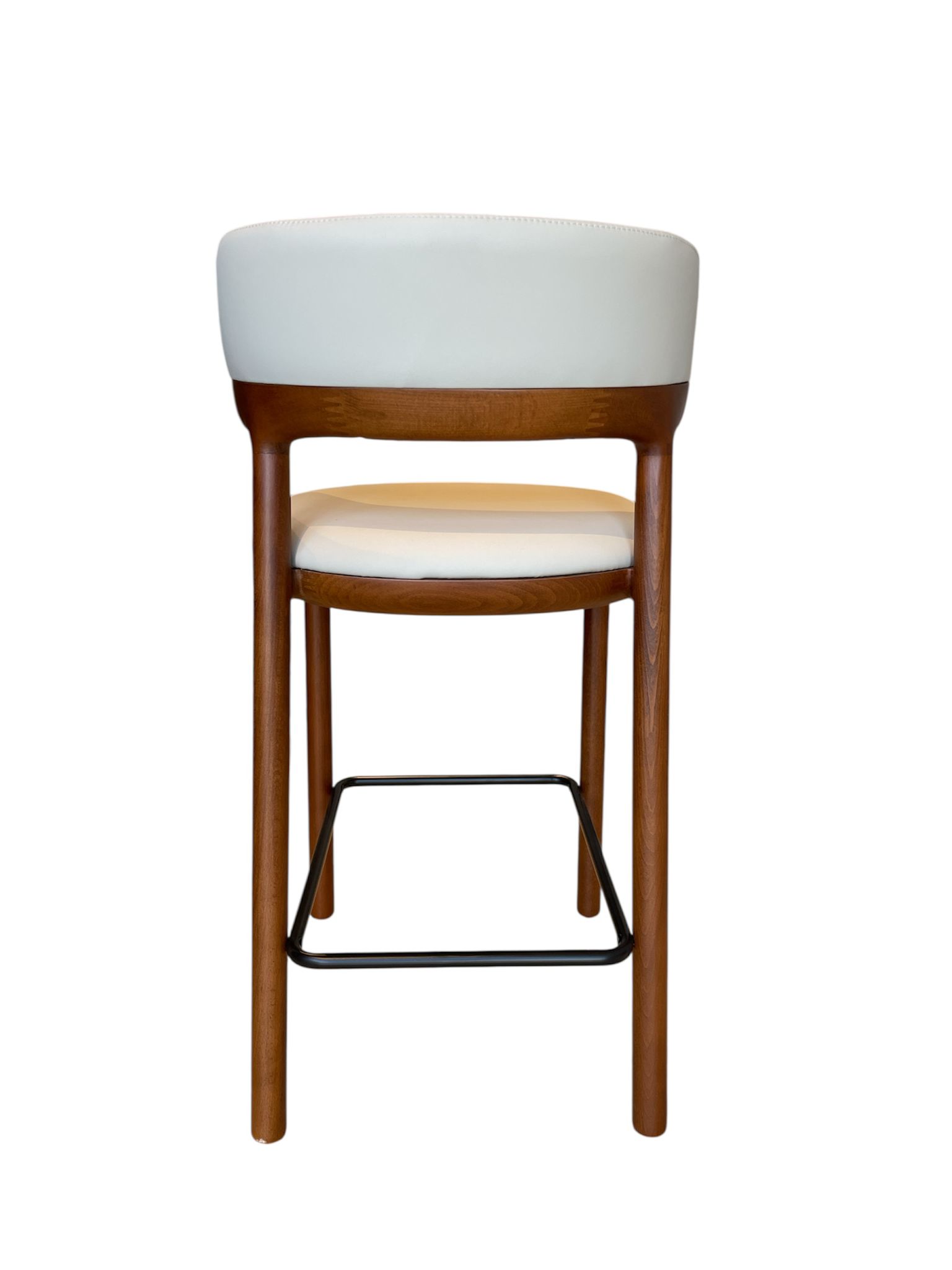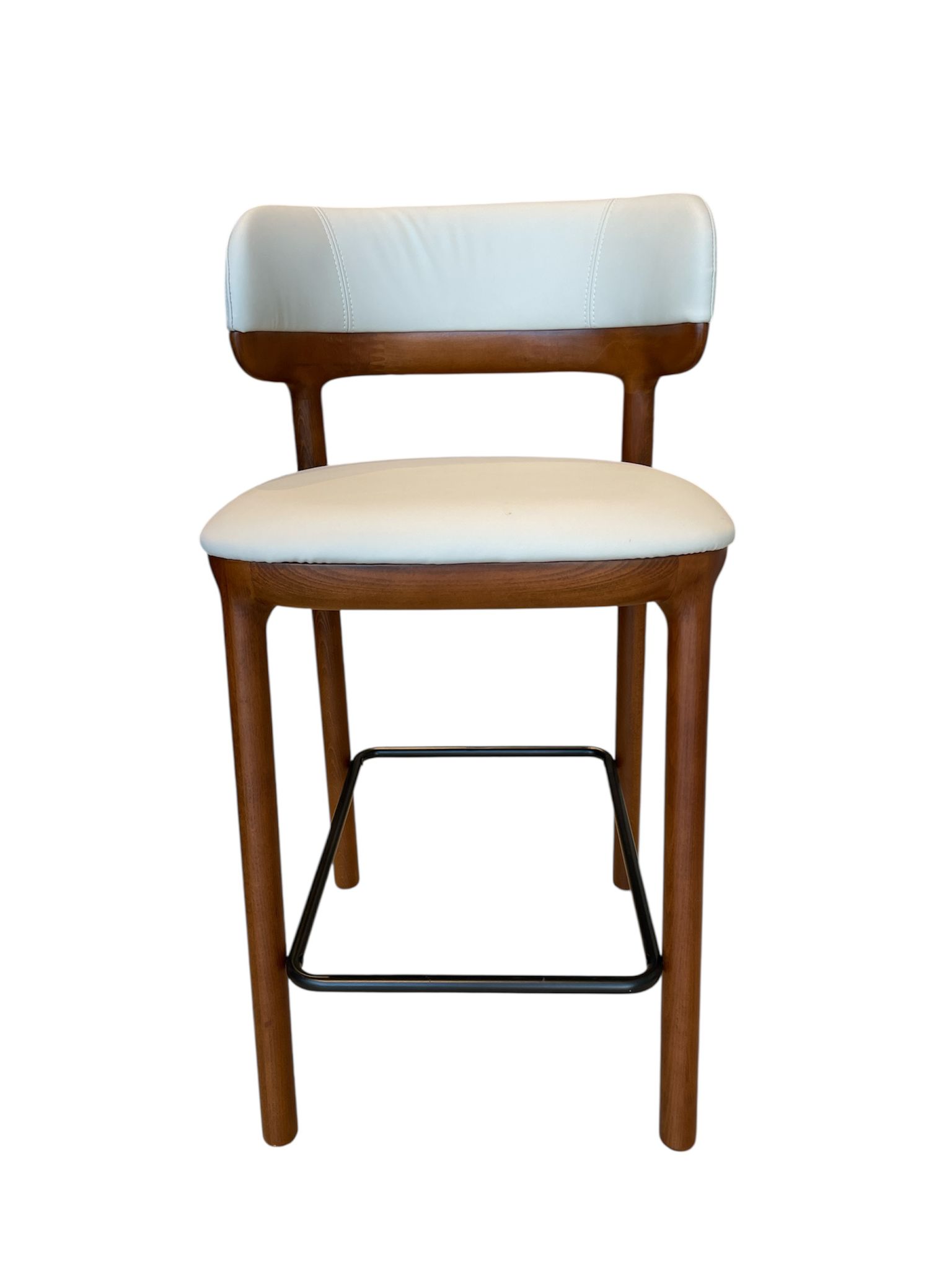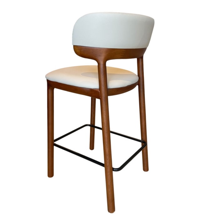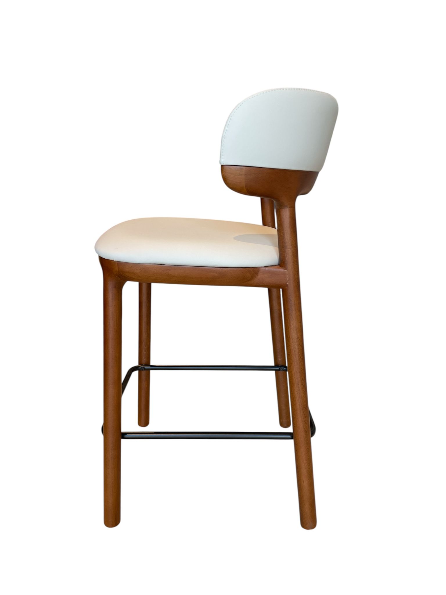 כיסא בר דגם אמיליה (BS-2122) עשוי דמוי עור בגוון בז' בשילוב עץ בגוון אגוז.