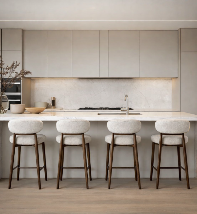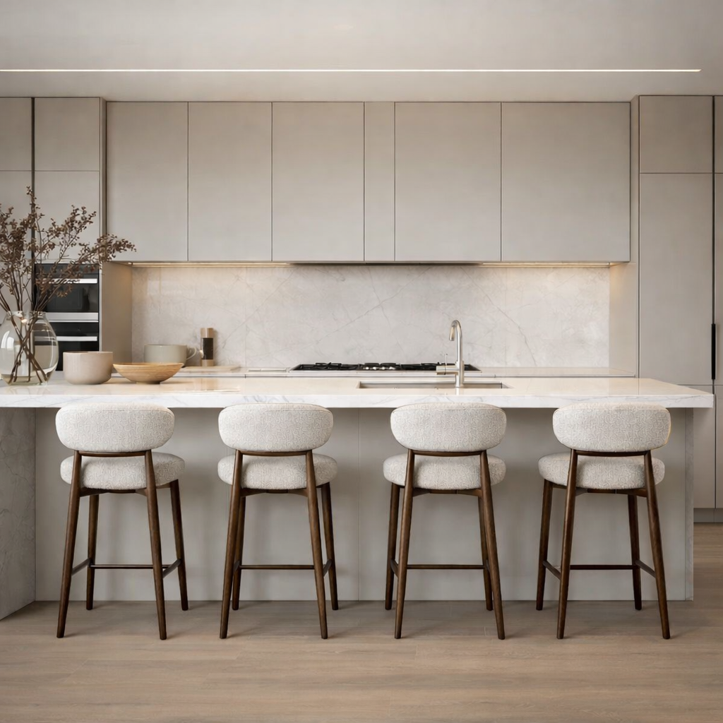 כיסא בר דגם פאולו, (4073ׂ) בשני גוונים לבחירה - רגלי אבן עם מושב בגוון אבן / רגלי עץ אגוז מושב שמנת.