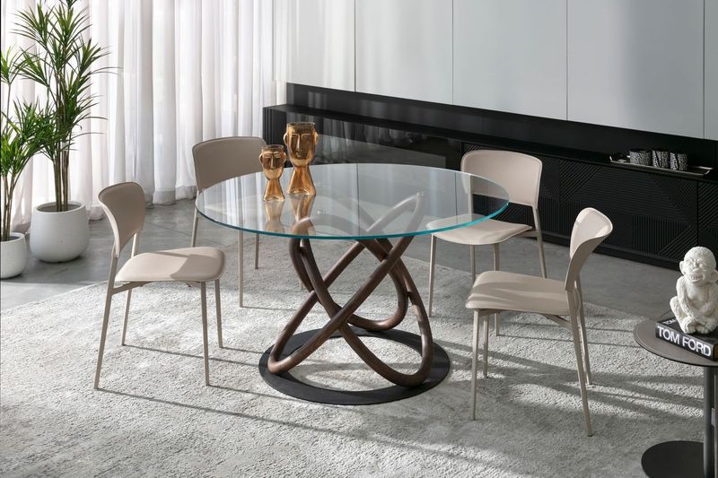 כיסא שולחן אוכל דגם (EDC-MA018) עשוי מעור בגוון אבן וגוון שחור.