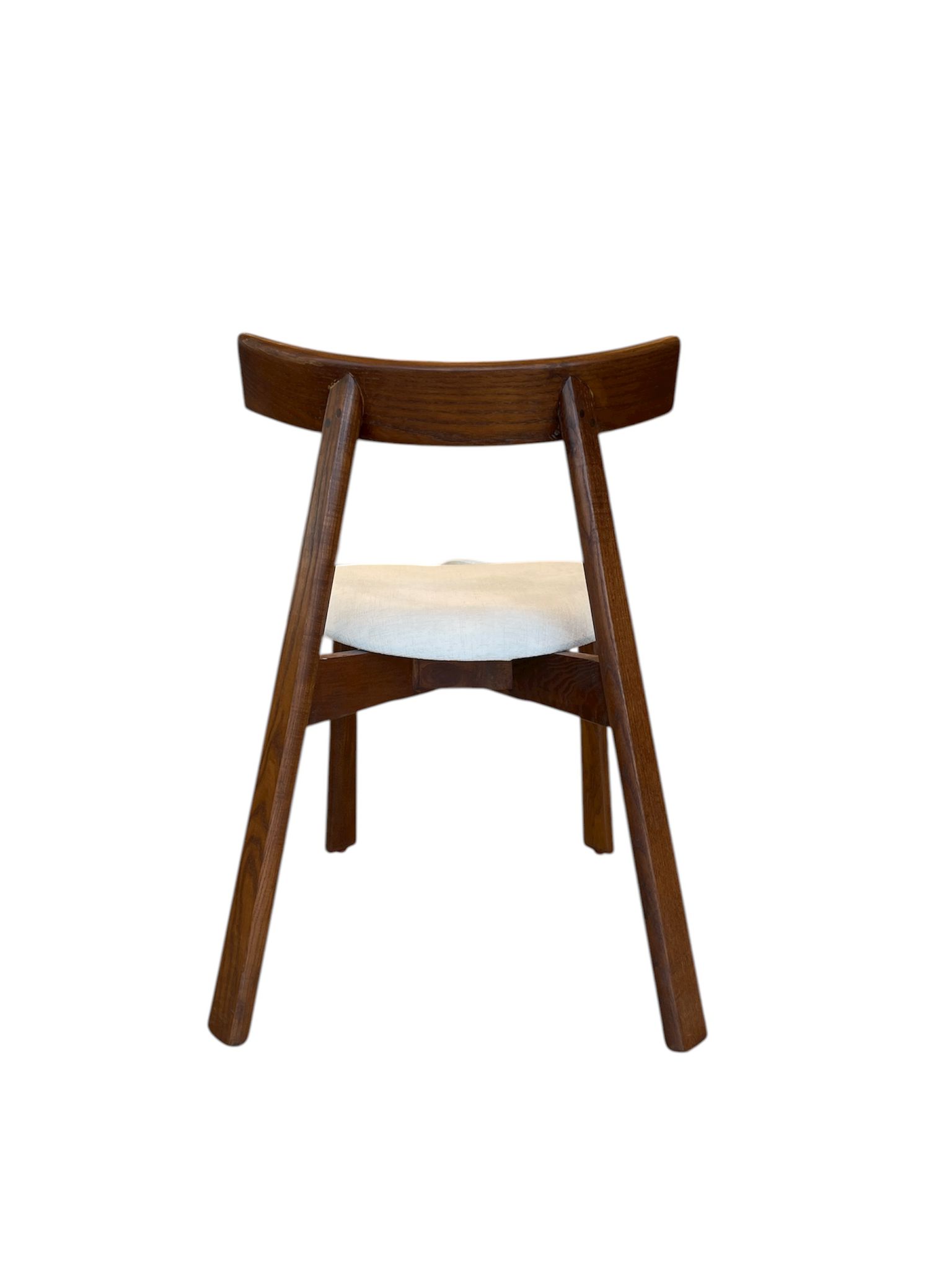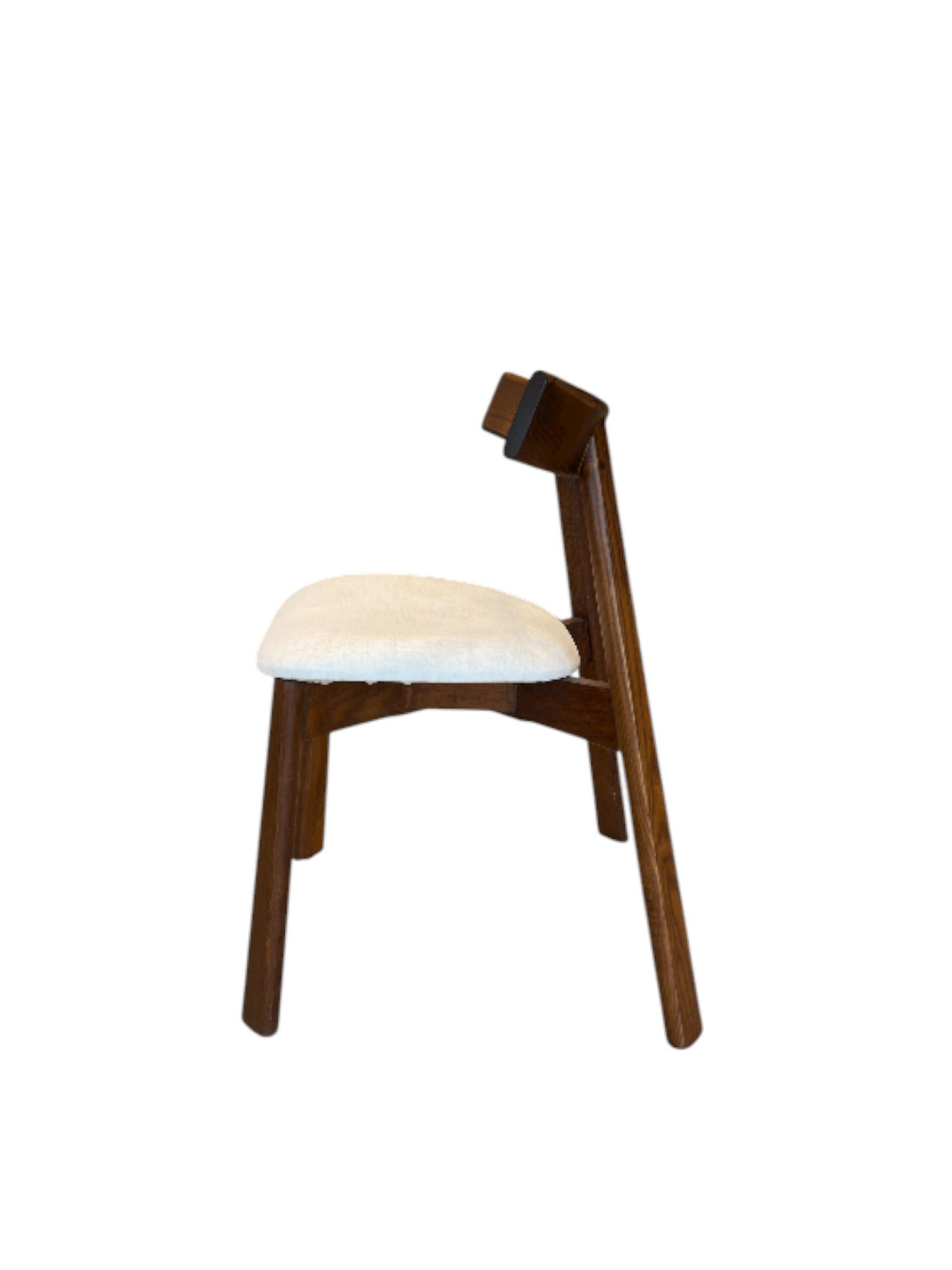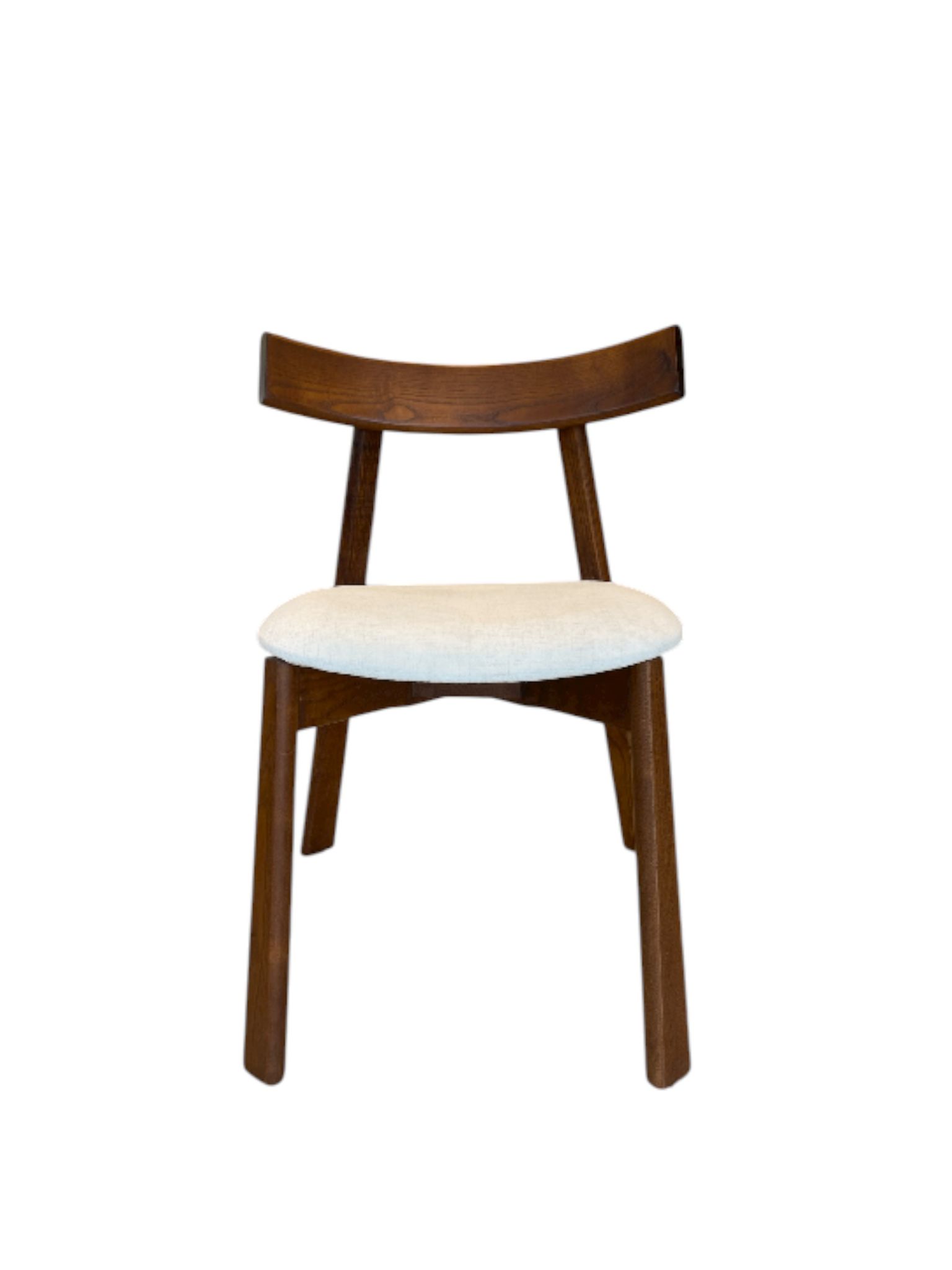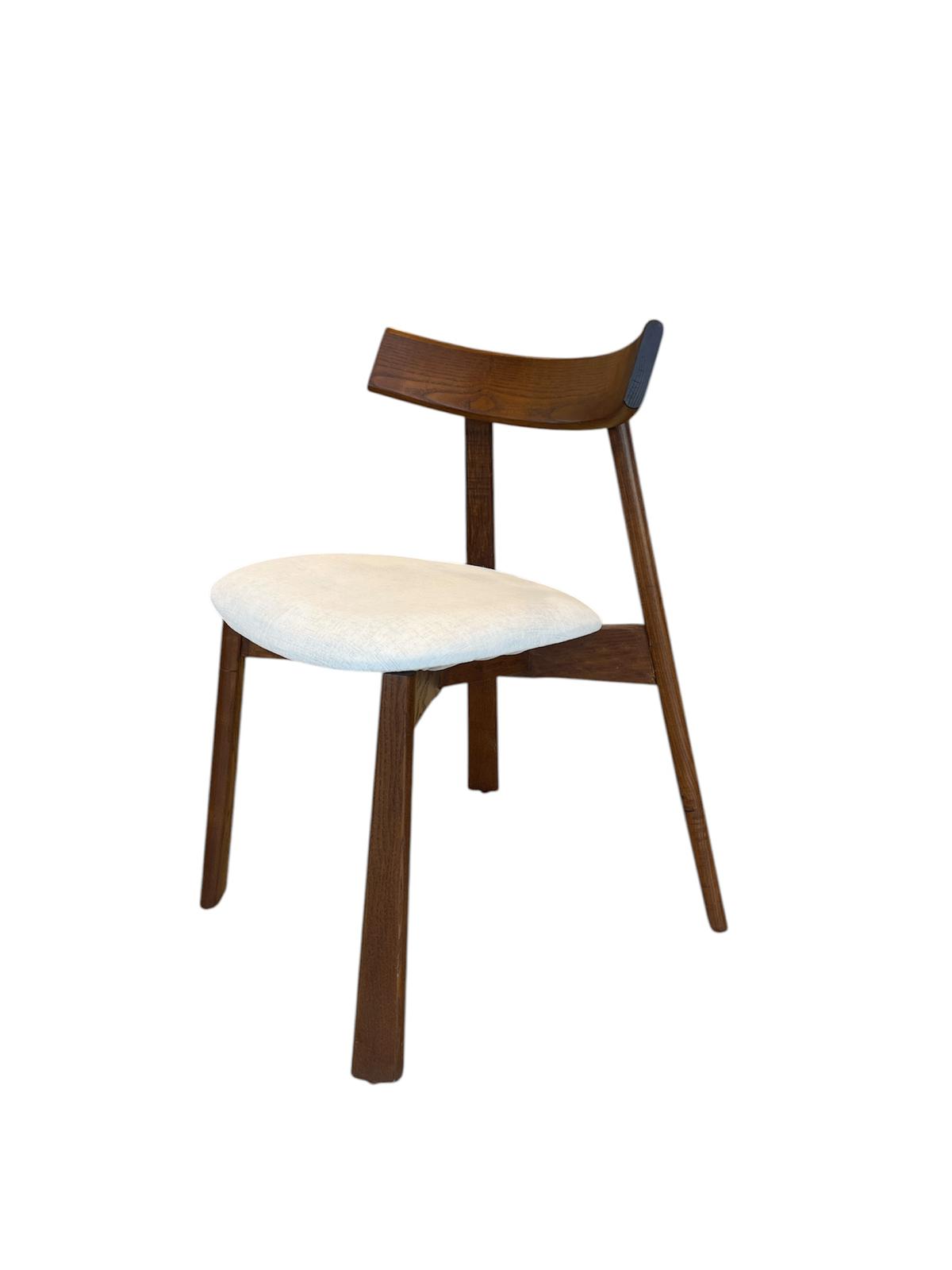 כיסא שולחן דגם עשוי בד משולב בגוון שמנת ורגלי עץ אגוז.