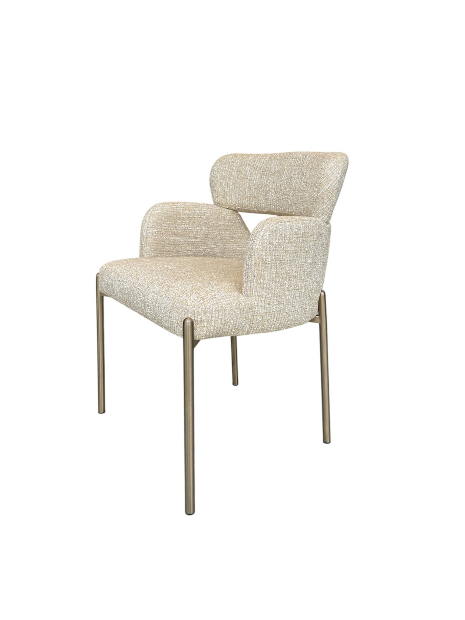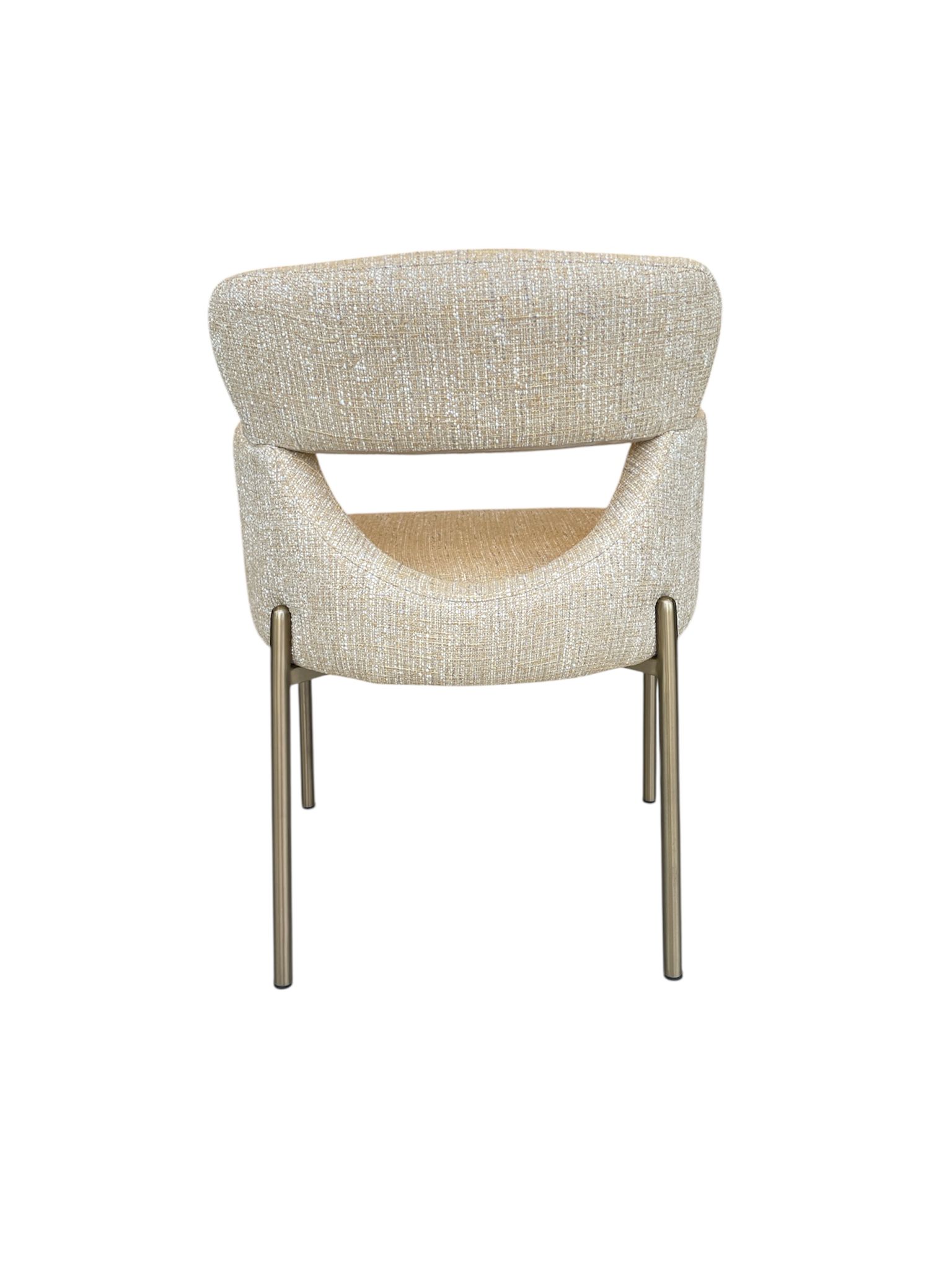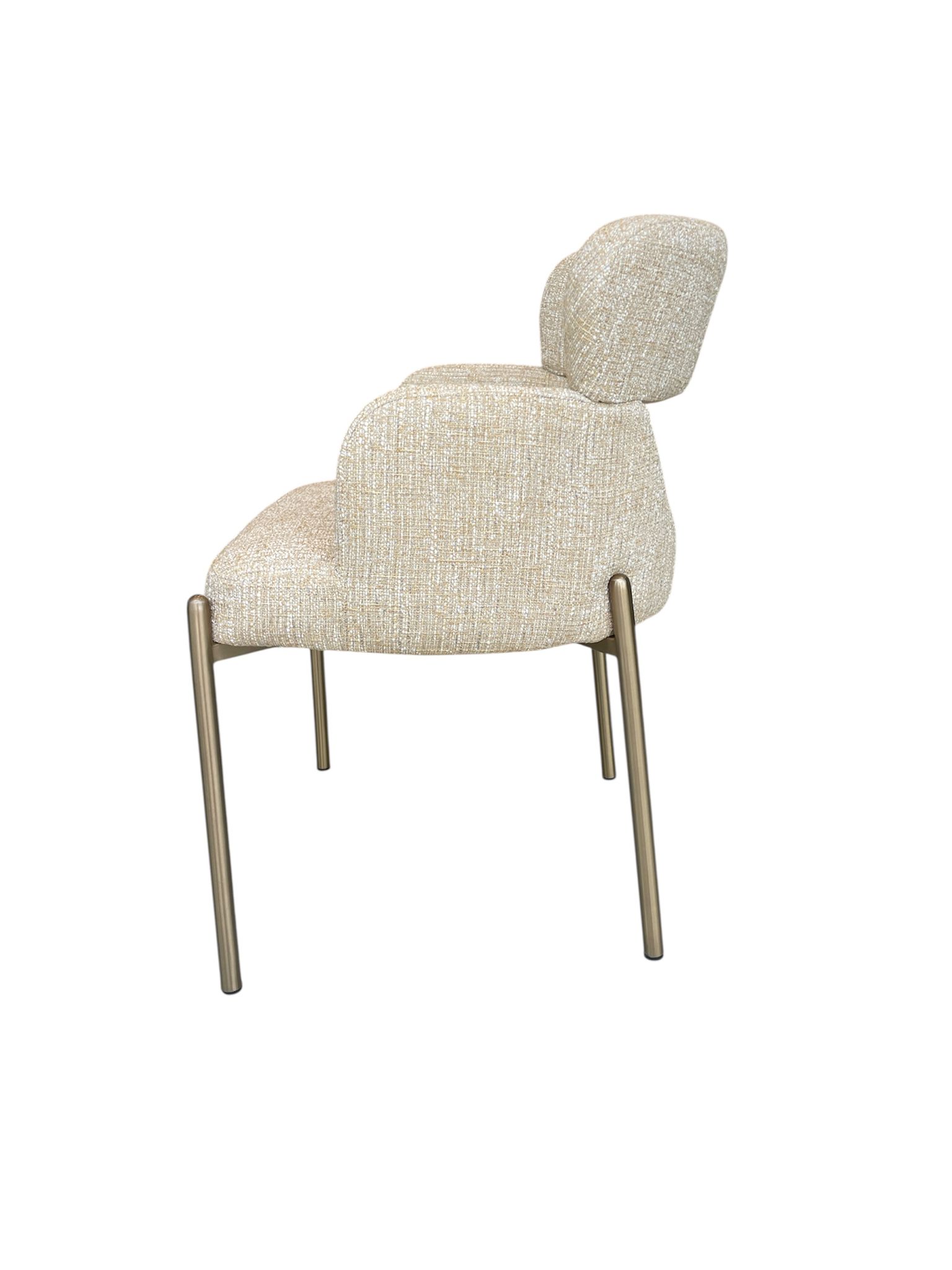 כיסא אוכל דגם גרניט (DC-6666ׂ), עשוי מבד משולב בגוון בז' ורגלי מתכת בגוון ברונזה.