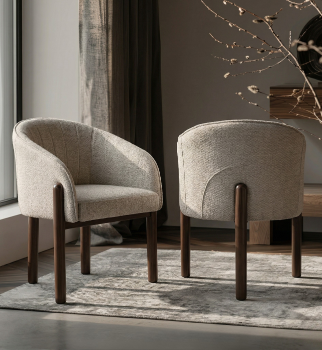 מלאו את פרטיכם ונחזור אליכם בהקדםכיסא אוכל דגם דול (CY1846) עשוי מבד בגוון אבן ורגלי מתכת בגוון רוז גולד.