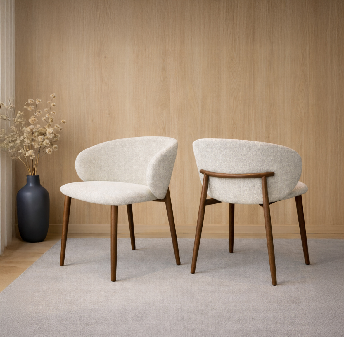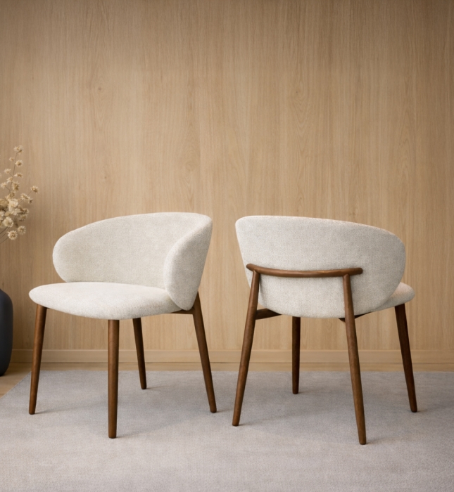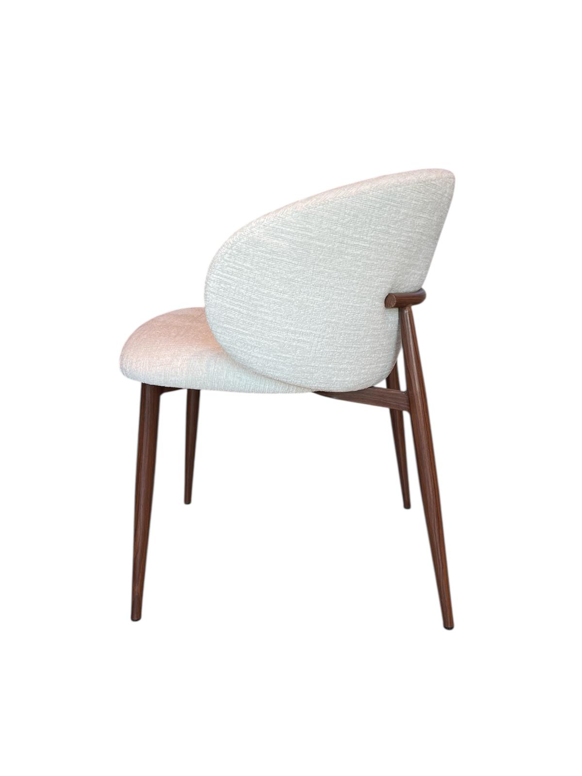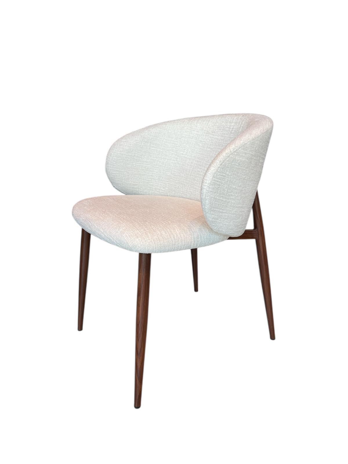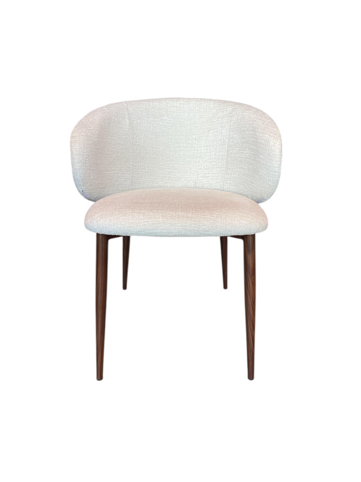 כיסא שולחן דגם (A-8436B | Walnet) עשוי מבד בגוון אבן ורגלי מתכת בגוון אגוז.