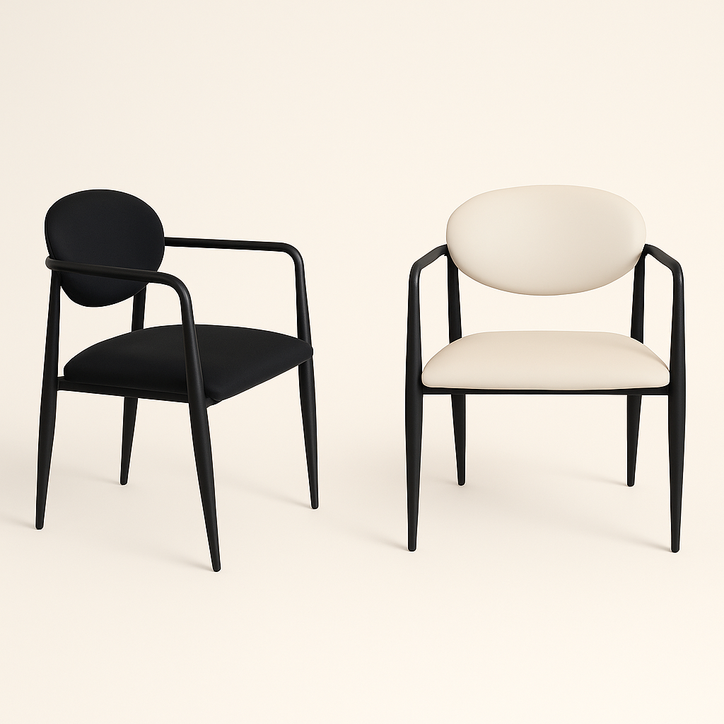 כיסא דין דגם (DC846) עשוי מדמוי עור בגוון בז' / שחור עם ידיות מתכת בגוון שחור.