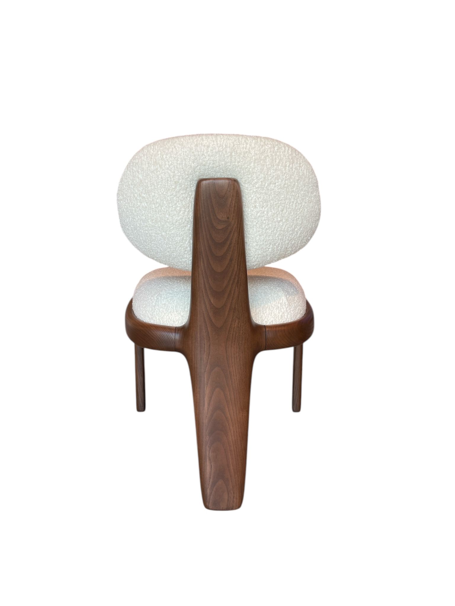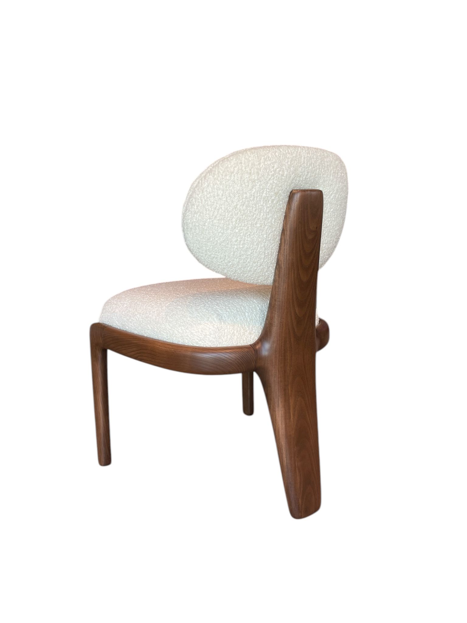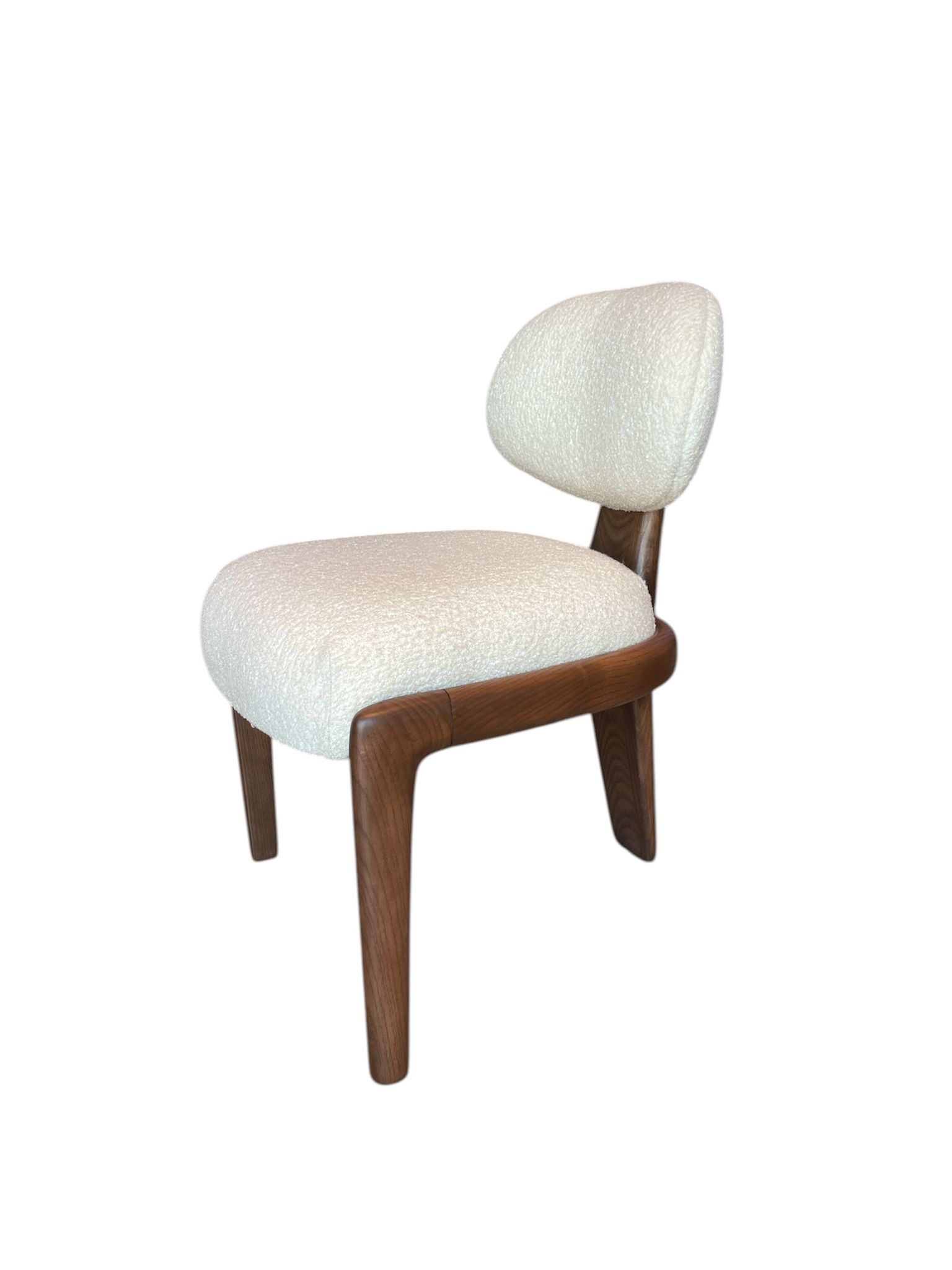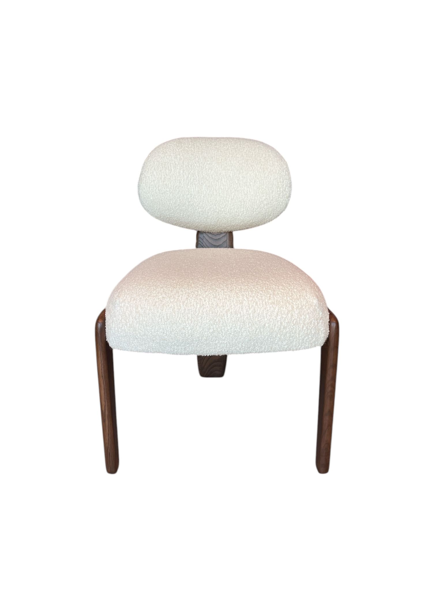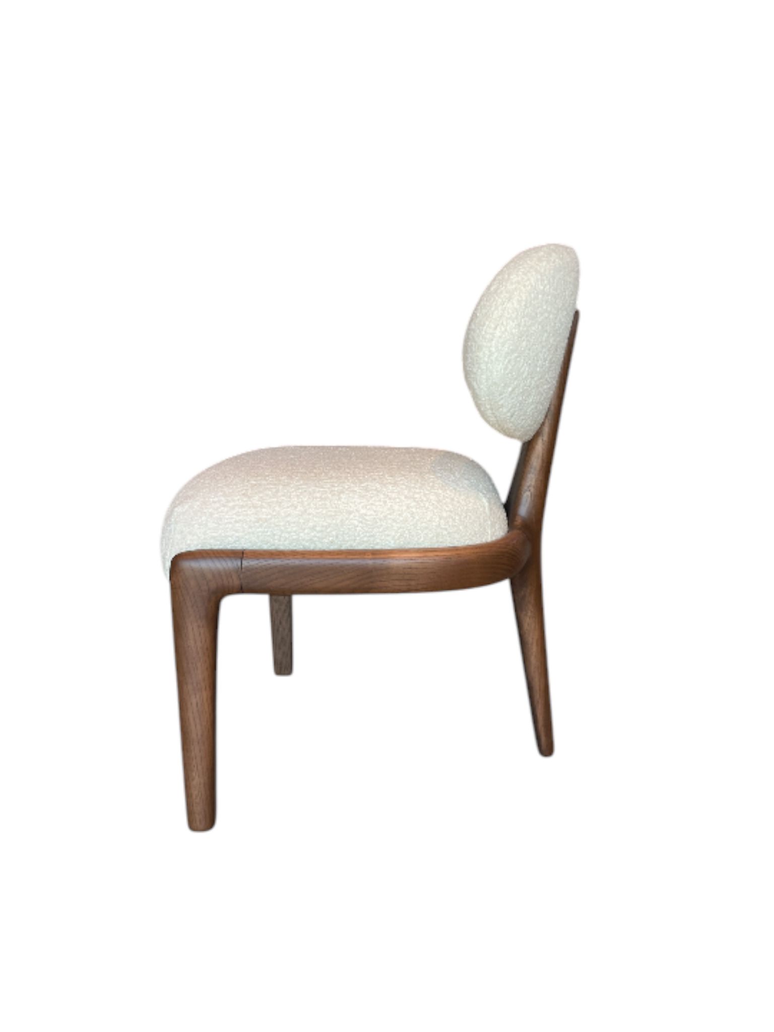 כיסא דגם ווג (WOGG) עשוי בד בוקלה בגוון שמנת עם רגלי עץ בגוון אגוז.