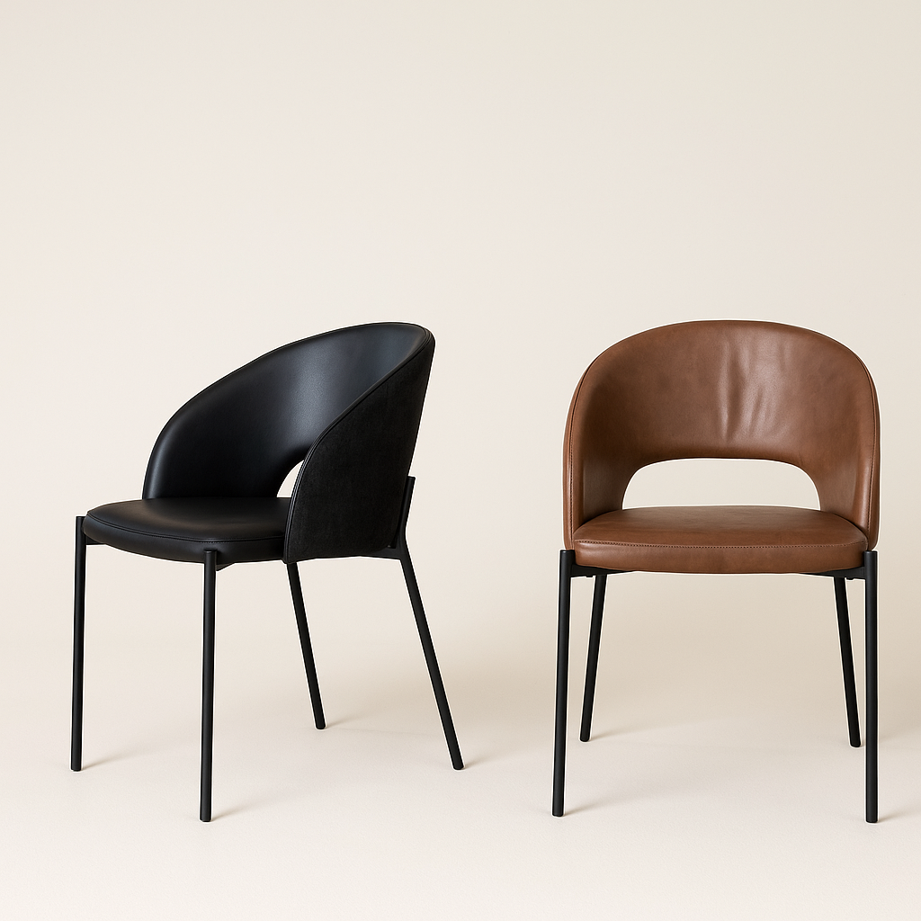 כסא דגם HDC022 עם ידיות, עשוי מדמוי עור, עם רגלי מתכת בגוון שחור.