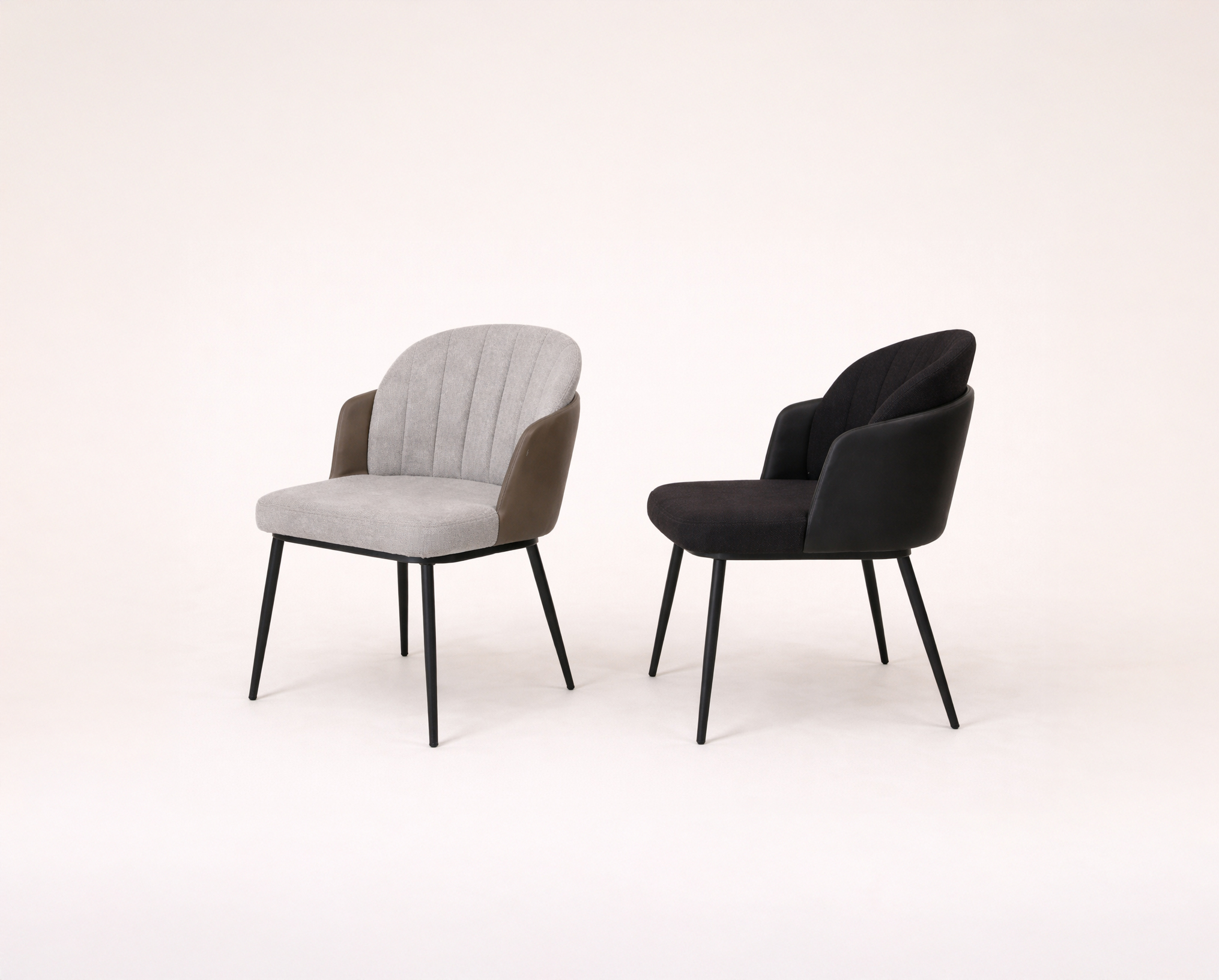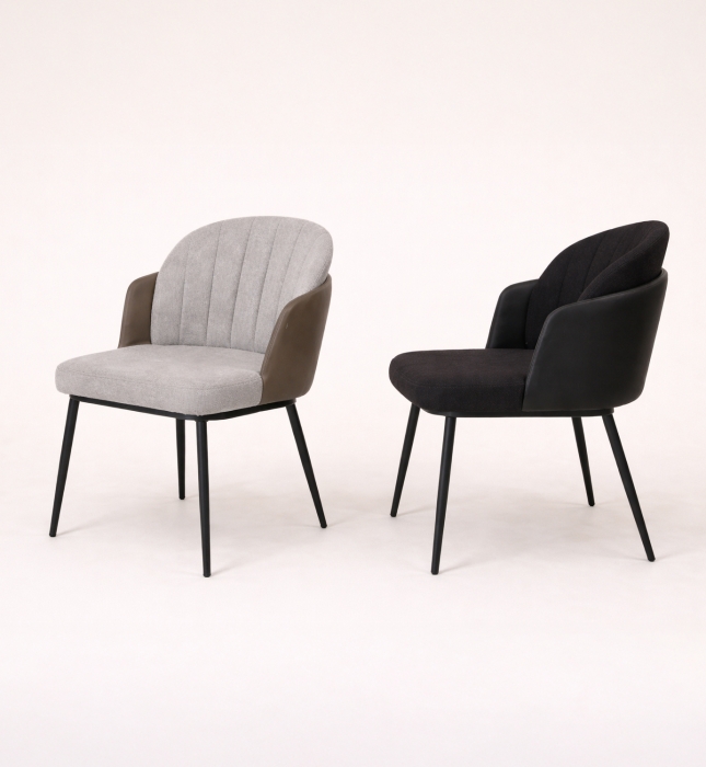 דגם פקי (Peki) (0138054-KD) בעל שלד מתכת שחורה. מרופד בבד אריג אפור בשילוב גב דמוי עור בצבע ירוק בקבוק.