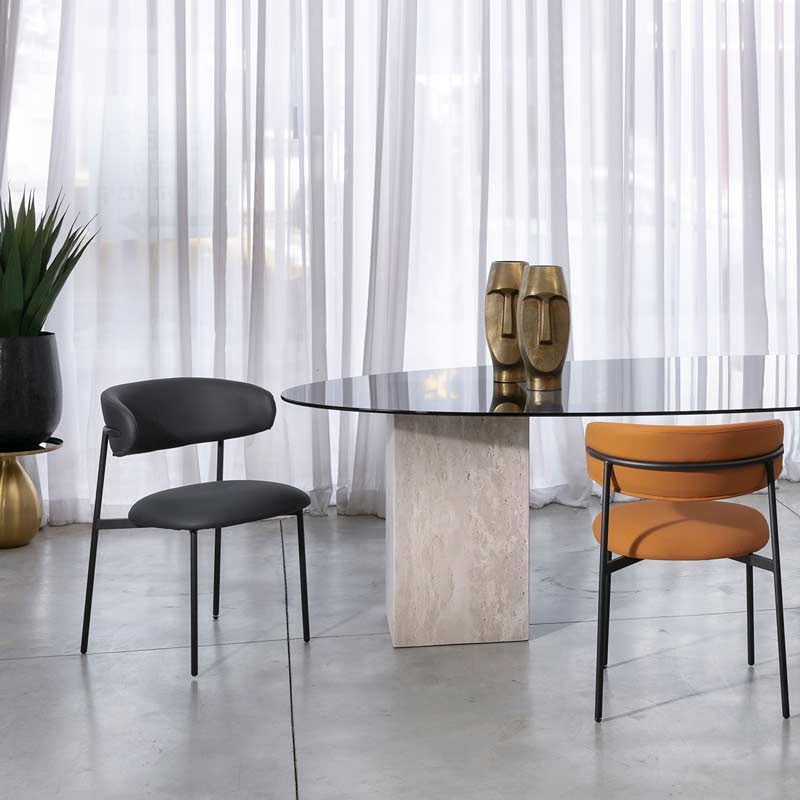 כסא דגם (UDC23014), עשוי דמוי עור ושלד מתכת שחורה.