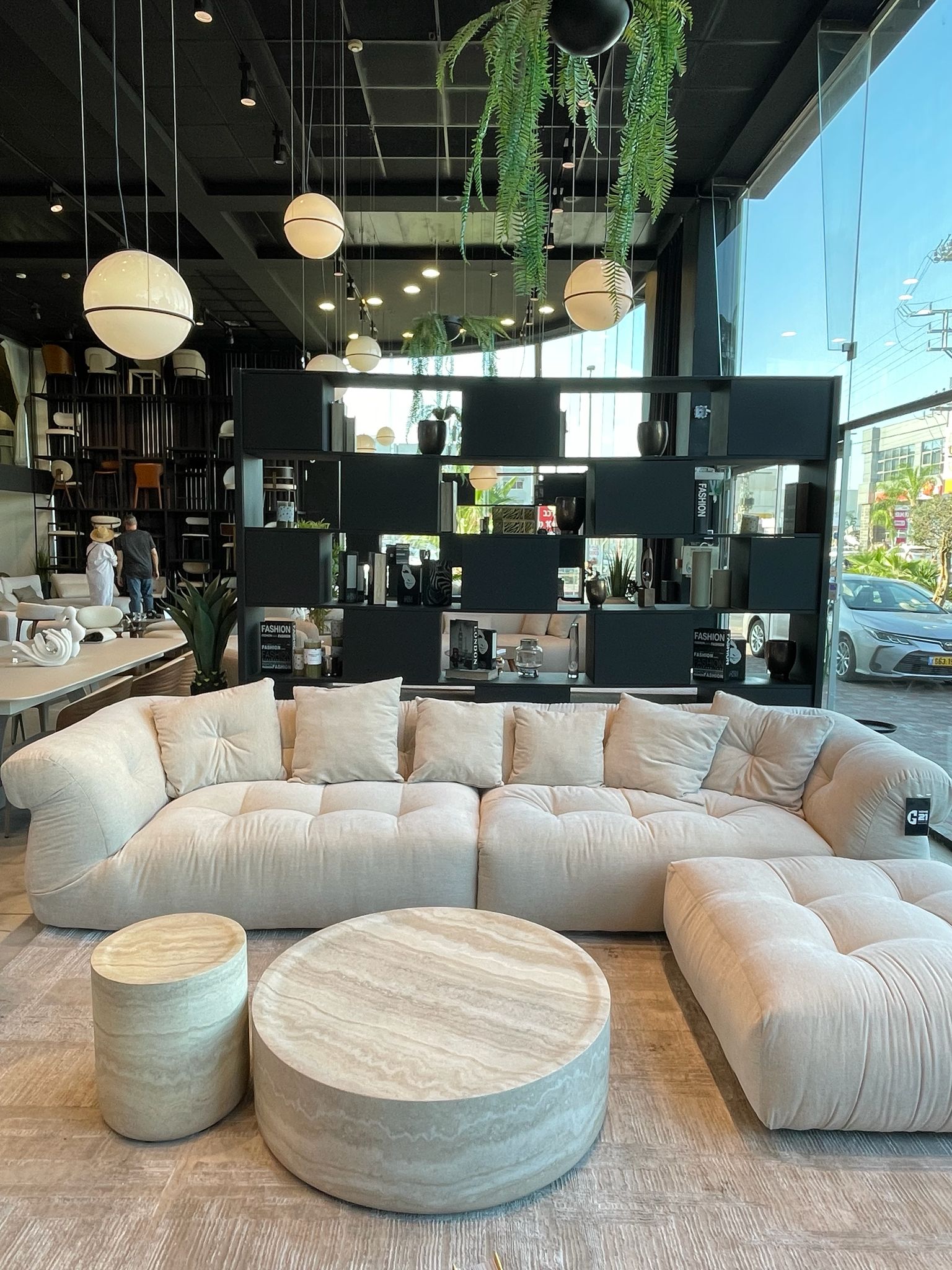 סט שולחנות סלון דגם טרוונטין, עשוי מפלטת דמוי טרוונטין.