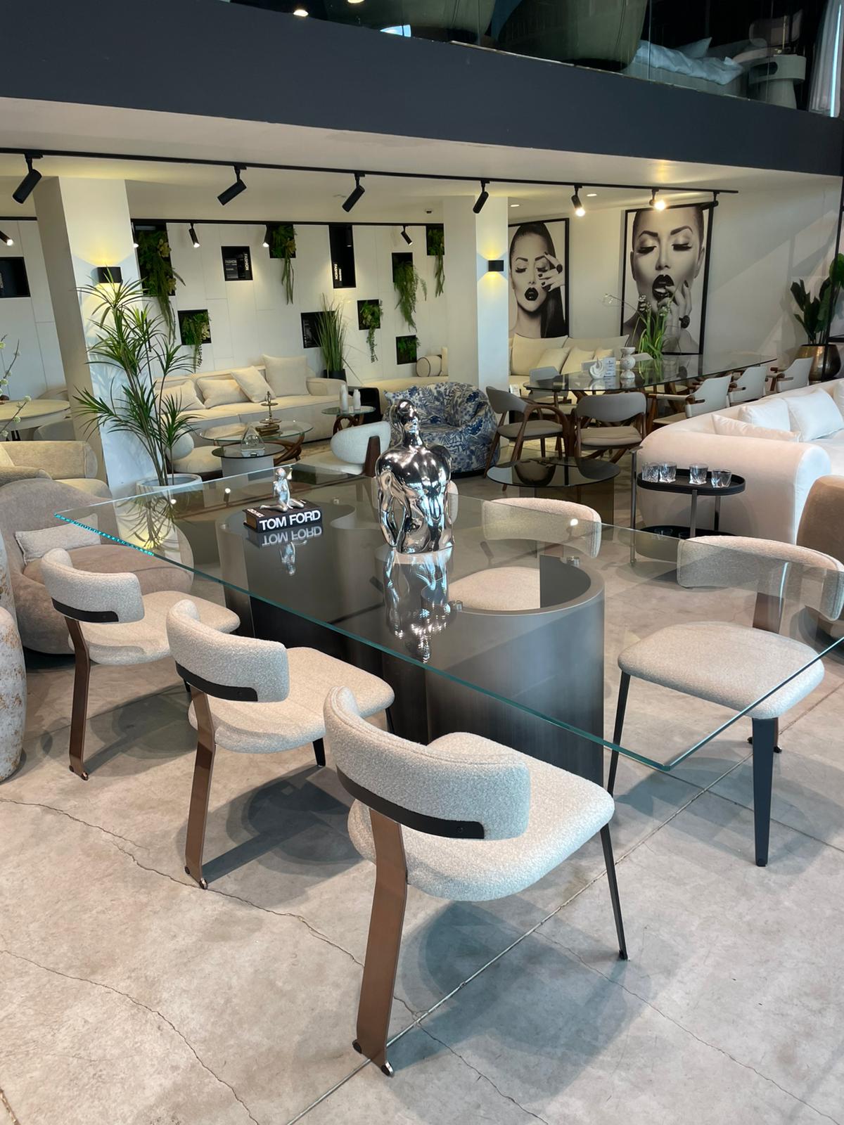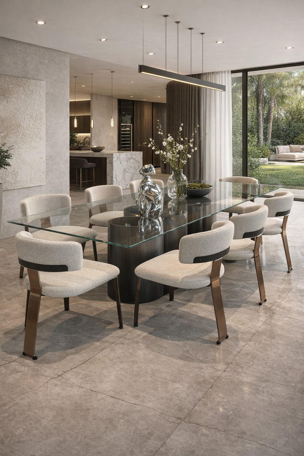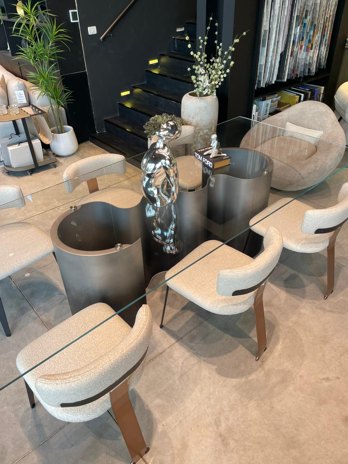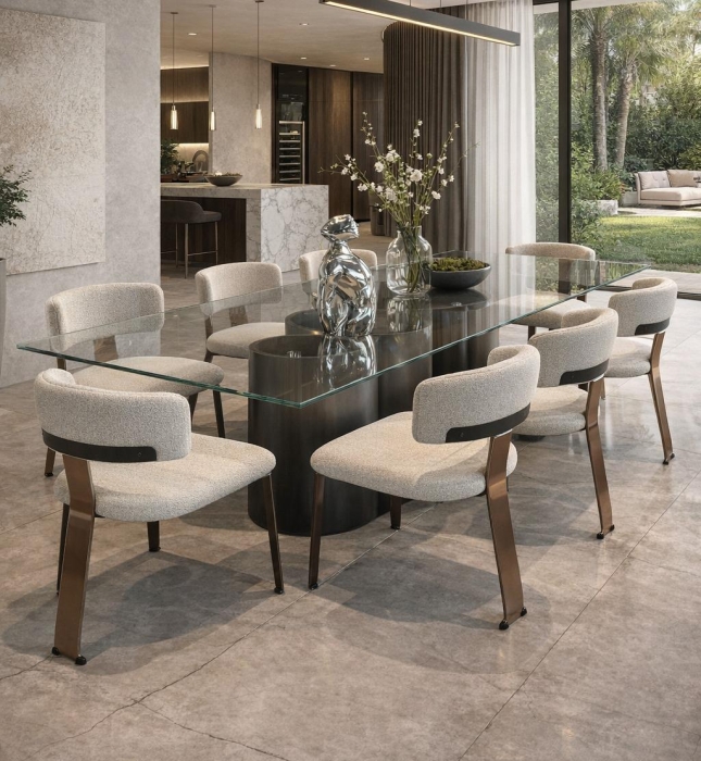 שולחן אוכל דגם אינפיניטי (RY-1319ׂׂ) קיים בפלטת זכוכית שחורה / שקופה עם רגל מתכת