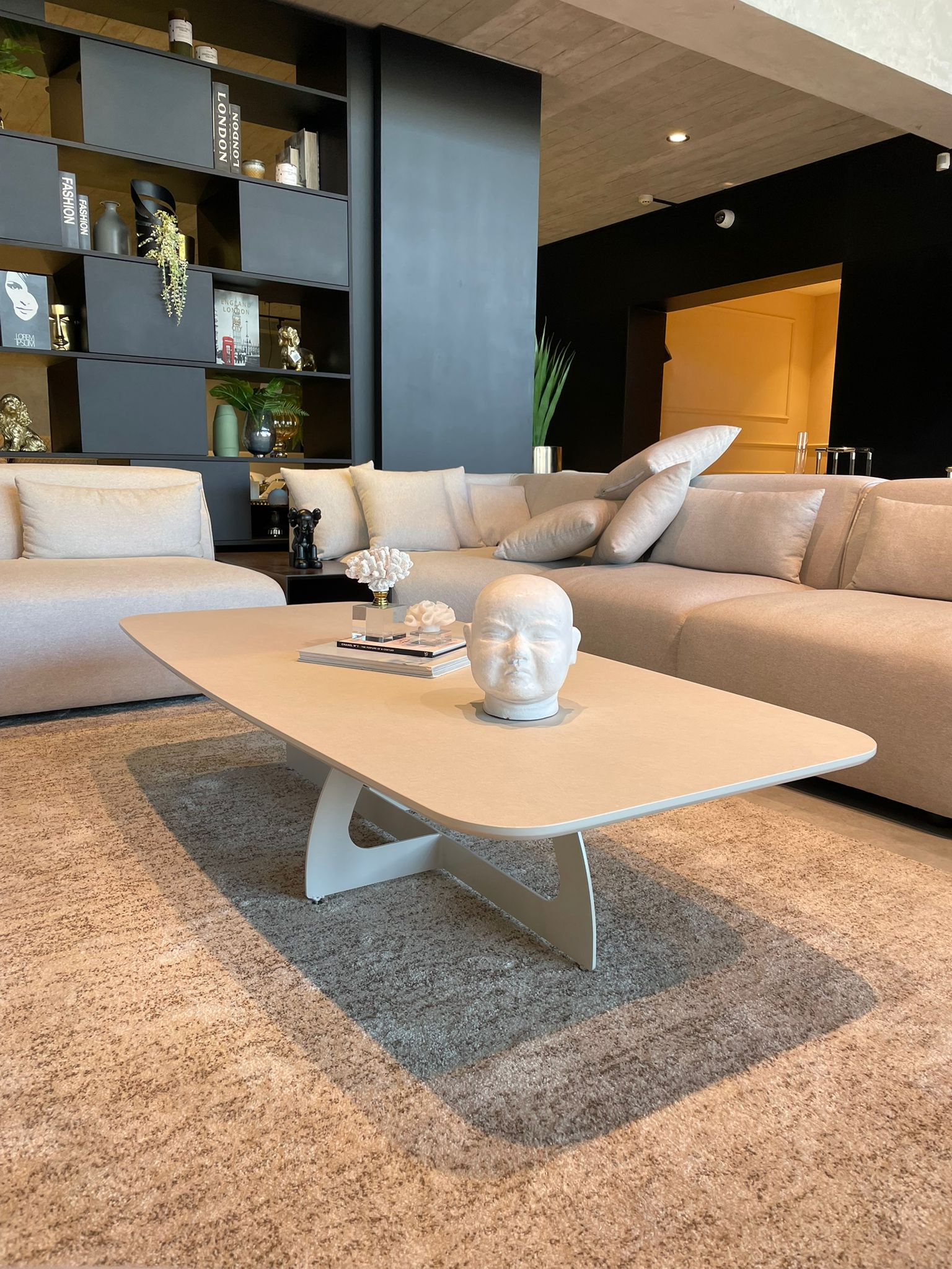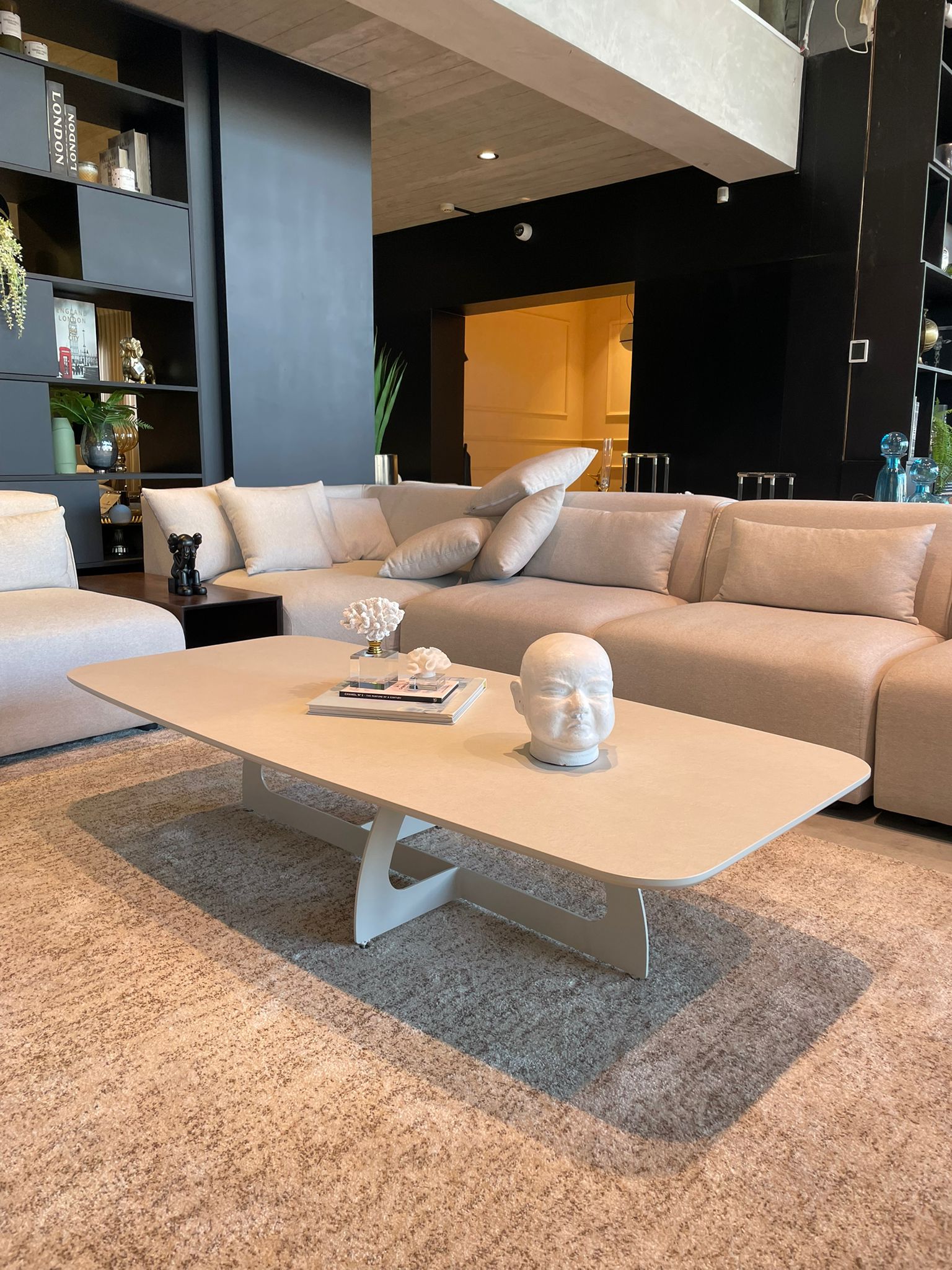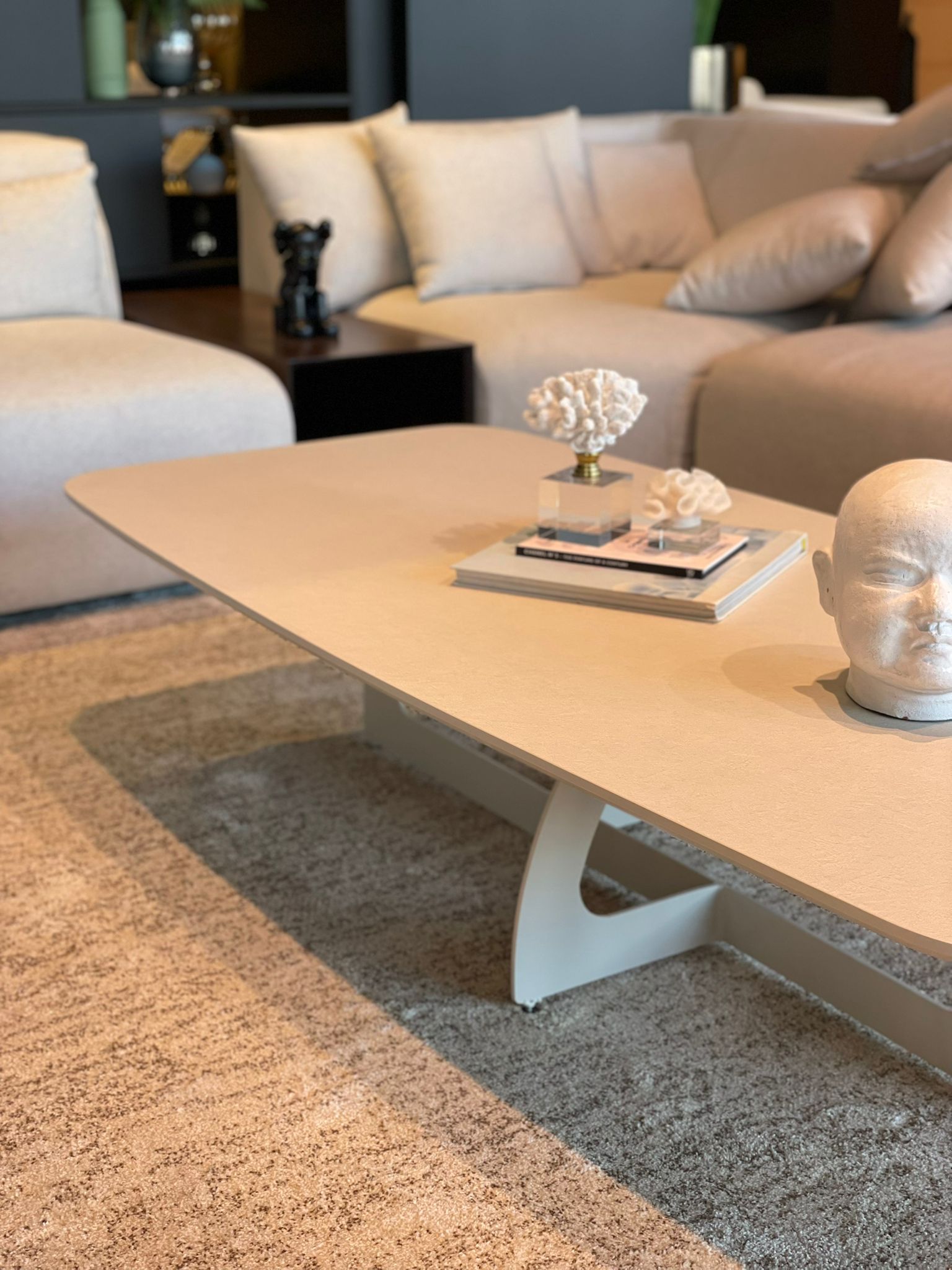 שולחן סלון דגם רויאל, עשוי פלטת פורמייקה לבחירה ורגלי מתכת בגוון שמנת.